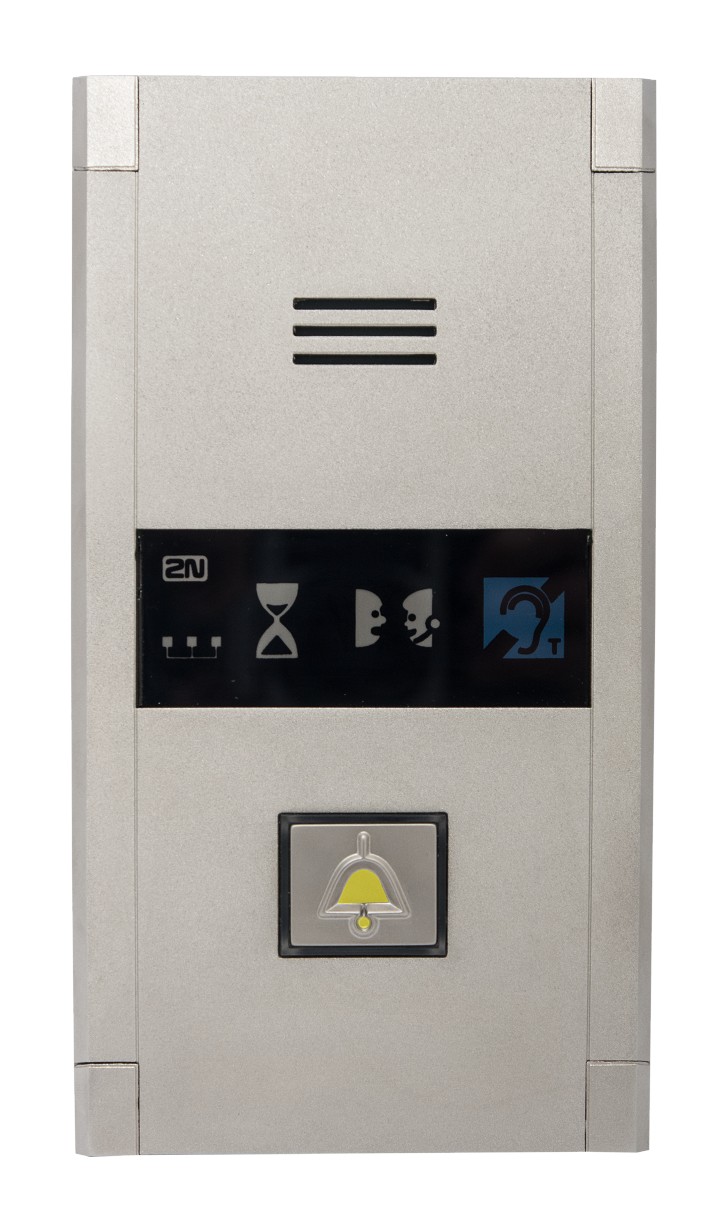 Robustní hláska v odolném provedení do kabiny výtahu, vybavená tlačítkem ALARM předepsané velikosti včetně označení pro nevidomé a prosvětlených piktogramů (tvrzené sklo). Snadná instalace (stačí připojit dvěma vodiči).