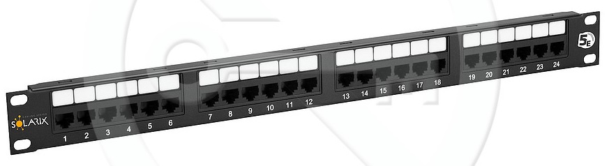 Nestíněné patch panely produktové řady Solarix – kategorie 5E jsou dodávány v provedení 12, 24 a 48 portů RJ45 a jsou osazeny moduly s duální IDC svorkovnicí typu 110/Krone. Každý kontakt je na této svorkovnici z důvodu snadného zakončení kabelu označen barvami podle typu zapojení, a to buď podle standardu T568A, nebo T568B.