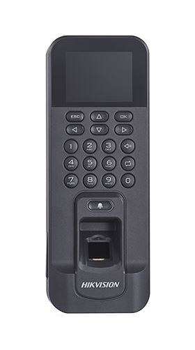 Biometrický přístupový IP terminál se čtečkou otisků prstů a RFID čtečkou EM karet. Terminál má LCD displej 2.4" se stálým zobrazením času a aktuální informací o ověření přístupu. Kapacita terminálu je 3000 uživatelů, počet uložených otisků prstů je 3000. Paměť událostí je na 100 000 záznamů. Vzdálená administrace terminálu z obslužného softwaru IVMS-4200 (AC). Terminál je určen pro fungování v autonomním režimu. Podpora exportu dat o docházce na USB flash disk. Automatické generování docházkových reportů se snadným prohlížením záznamů. Obsahuje vstupní a výstupní rozhraní, 1x RJ-45,WiFi, 1x RS-485, 1x vstupní Wiegand (26/34), 1x výstupní Wiegand (26/34), 1x spínací kontakt na zámek, 1x kontakt pro odchodové tlačítko, 1x alarmový vstup, 1x alarmový výstup, 1x tamper. Provozní teplota je -10°C až 55°C, napájení 12 Vdc /1A, rozměry 205 x 77 x 37mm.