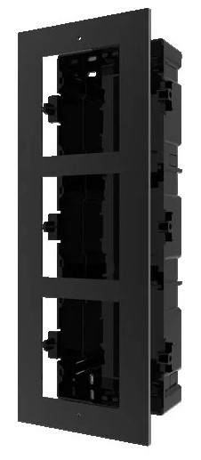 Komplet plastové zápustné instalační krabičky pod omítku a černého rámečku pro 3 moduly, možnost instalace více krabiček vedle sebe, rozměry krycího černého rámečku 337.8 x 124 x 4 mm, rozměry plastové montážní krabičky 320.8 x 107 x 32.7 mm, určeno pro IP systém i 2-vodičový systém.