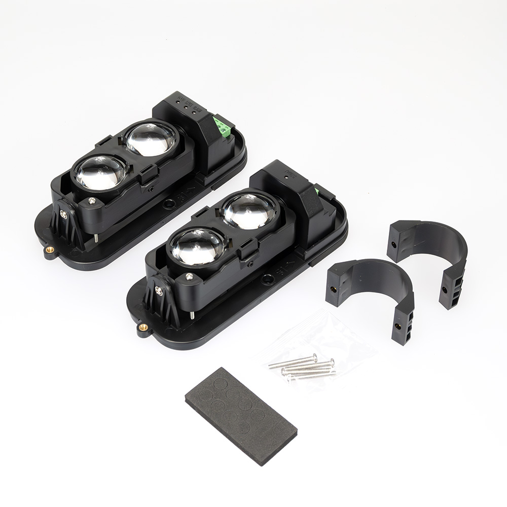 2 paprsková infračervená závora určená pro venkovní nebo vnitřní instalaci. Infračervený paprsek je vysílán pulzně mezi vysílačem a přijímačem, což zvyšuje odolnost proti povětrnostním podmínkám a narušení. Pro směřování paprsku jsou použity kvalitní asférické čočky, které minimalizují útlum IR paprsků a tvarují je do požadovaného svazku, který je zachován i na velké vzdálenosti. Poplach je vyvolán pouze tehdy, dojde-li k přerušení obou paprsků najednou.