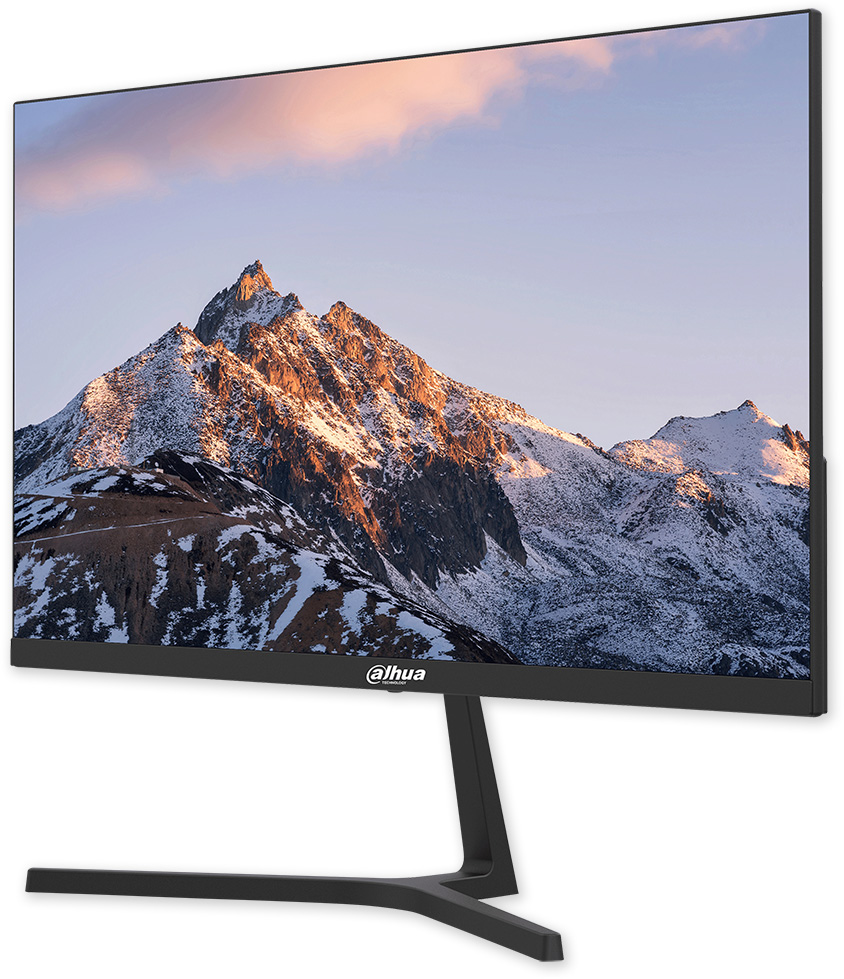 Barevný širokoúhlý LCD monitor 23,8", Full HD rozlišení (1920 x 1080 px), ultra úzký rámeček, antireflexní povrch, HDMI a VGA vstup, reproduktory. Nízká spotřeba energie. Vhodný pro kamerové systémy.