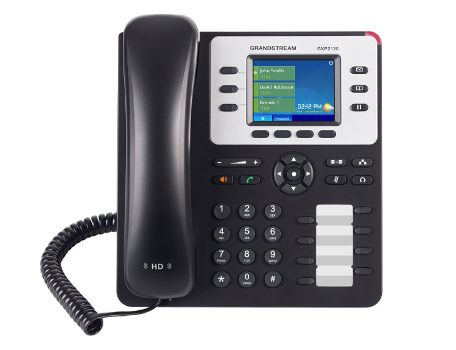 Grandstream GXP2130 je standardní IP telefon který si, díky své multifunkčnosti a snadnému ovládání, získá oblibu především menších podniků. Asistentka, která zároveň plní i roli spojovatelky, ho může využít stejně dobře, jako manažer, administrativní pracovník, či obchodní zástupce. Telefon nabízí 8 BLF tlačítek (neboli tlačítek rychlého vytáčení) a to s dvoubarevnou LED indikací, pro lepší přehled o aktuálním stavu linek / telefonních klapek. Spojovatelka tak kdykoliv v reálném čase umí přepojit hovor na volnou a aktivní linku / telefonní klapku. Lepší manipulaci s hovory zajistí velký 2.8“ podsvíceny barevný TFT LCD displej, který je oproti standardním grafickým displejům výrazně přehlednější. Ovládání samotného displeje je snadné a intuitivní. Manažer, administrativní pracovník, nebo stejně tak obchodní zástupce může využít možnost 4cestné audio konference, která šetří čas uživatele a s tím spojené náklady firmy.