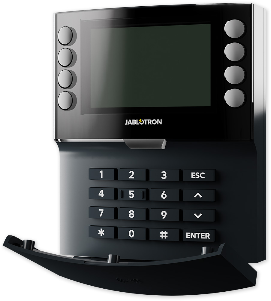 JA-115E-AN je přístupový modul s displejem, klávesnicí a RFID čtečkou. Slouží k ovládání a signalizaci aktuálního stavu systému. Je vybaven čtyřmi segmenty. Jejich popisy se zobrazují na LCD displeji.