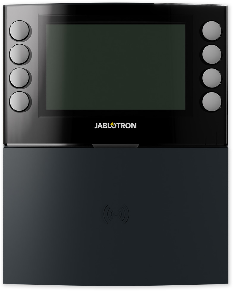 JA-155E-AN je obousměrně komunikující bezdrátový přístupový modul s displejem, klávesnicí a RFID čtečkou. Slouží k ovládání a signalizaci aktuálního stavu systému. Je vybaven čtyřmi segmenty. Jejich popisy se zobrazují na LCD displeji.