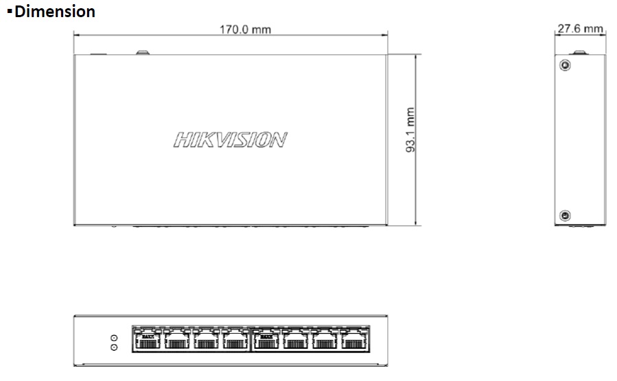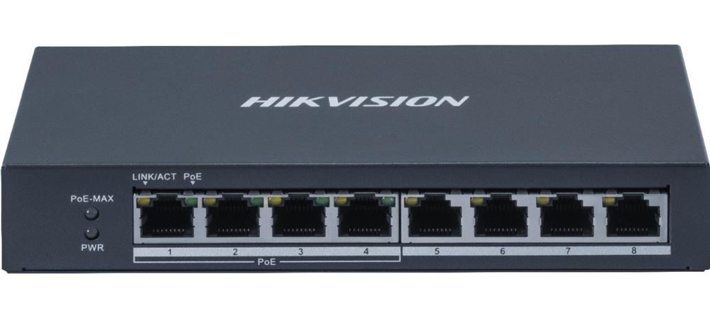 Switch 8 portů, 4x 1Gbps PoE port + 4x 1Gbps RJ45 port, Network protokol IEEE802.3, 802.3u, 802.3x. Přepínací kapacita switche 16Gbps. Pracovní teplota: 0 - 40C°. Napájení: 48Vdc/1.35A. Hmotnost 0,921kg, kovový kryt.