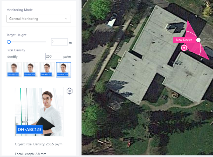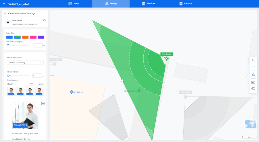 Online nástroj "DHTools Designer" slouží k návrhu kamerového systému Dahua. Umožňuje vytvořit mapový i letecký podklad z Google mapy, vkládat do něj konkrétní modely kamer a záznamů na základě filtrování. Zobrazuje orientační 2D a 3D přehled s náhledem situačního detailu. Vytvořený návrh pomůže zvolit vhodnou kameru, objektiv, rozlišení, udělat si představu o fungování v reálné situaci.