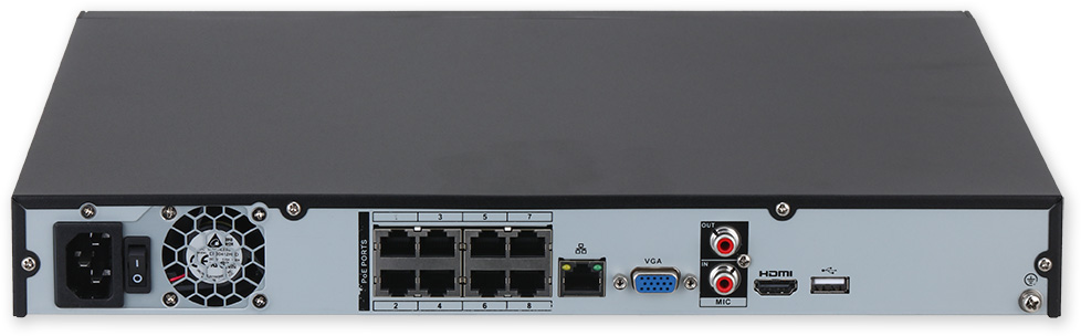 PoE napájení kamer:8 x PoE 10/100 Mb (802.3af/at)/(max.130 W celkem) s technologií Plug & Play