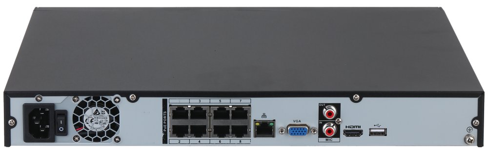 PoE napájení kamer: 8 x PoE 10/100 Mb (802.3af/at)/(max.130 W celkem) s technologií Plug & Play