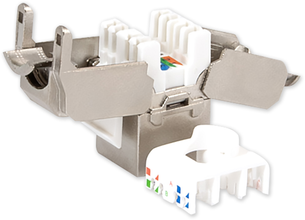 Keystone KJ-520 Cat.5e ve stíněném provedení je určen pro montáž do modulárních zásuvek a patch panelů. Tento typ keystonu je se zadním osazováním a je vybaven samořeznou svorkovnicí s víčkem, součástí keystonu je odnímatelná protiprachová krytka.