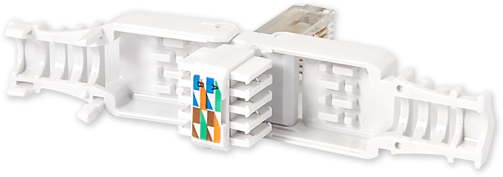 Samořezný konektor RJ45 Cat.5e UTP pro datový kabel, pro vodič drát. Pro zapojení konektoru nejsou potřeba krimpovací kleště.