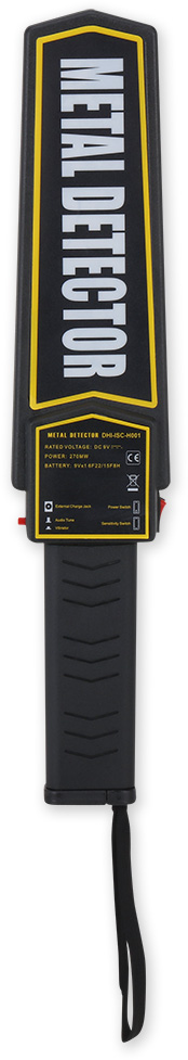 Přenosný ruční detektor kovů pro bezpečnostní aplikace. Dvě úrovně citlivosti, zvukový a světelný alarm, vibrace, LED indikace stavu, napájení z baterie 9V (6F22/15F8H), hmotnost 670 g, rozměry š 420 x v 90 x h 45 mm.