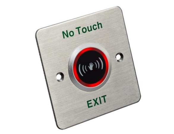 dveřní odchodové tlačítko; NC/NO/COM kontakty; pracovní teplota -20°C až 50°C; 86 mm × 86 mm × 25.7 mm