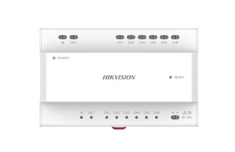 Video/Audio distributor, dvouvodičový HD analogový systém, 6 portů bez napájení pro připojení pouze distributorů DS-KAD-7060EY, resetovací tlačítko, napájení 48VDC (není součástí dodávky)