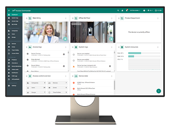 Uživatelsky přívětivý software pro správu přístupových oprávnění a nastavení dalších vlastností uživatelů. Umožňuje ovládání, zjištění stavu a historie událostí připojených zařízení (čtečky, interkomy) v reálném čase. Správu systému můžete delegovat na zákazníka aniž by měl přístup k "systémovému" nastavení. Doplňkovou funkcí je jednoduchá evidence docházky. Dále aplikace nabízí propracovaný management návštěv, omezení přístupu do oblastí (obsazenost, anti-passback), řešení pro výtahy a kamerové logy (přístupové informmace, doplněné o fotografii z interkomu). Díky otevřenému API je možná integrace s dalšími systémy třetích stran.