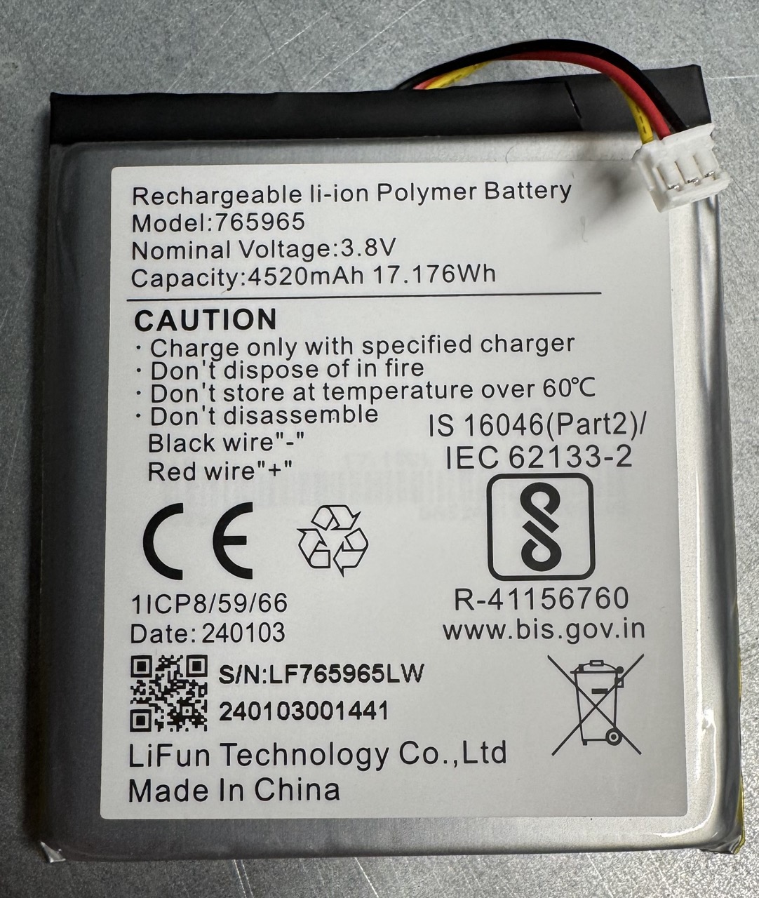 Náhradní baterie pro ústředny pro ústředny DS-PWA96-M-WE/DS-PWA64-L-WE, kapacita: 4520 mAh, rozměry 59 x 68 x 8 mm, hmotnost 68g.Pozor - tento typ baterie je vhodný pouze pro ústředny AX PRO vyrobené do data 02/2025 !!!