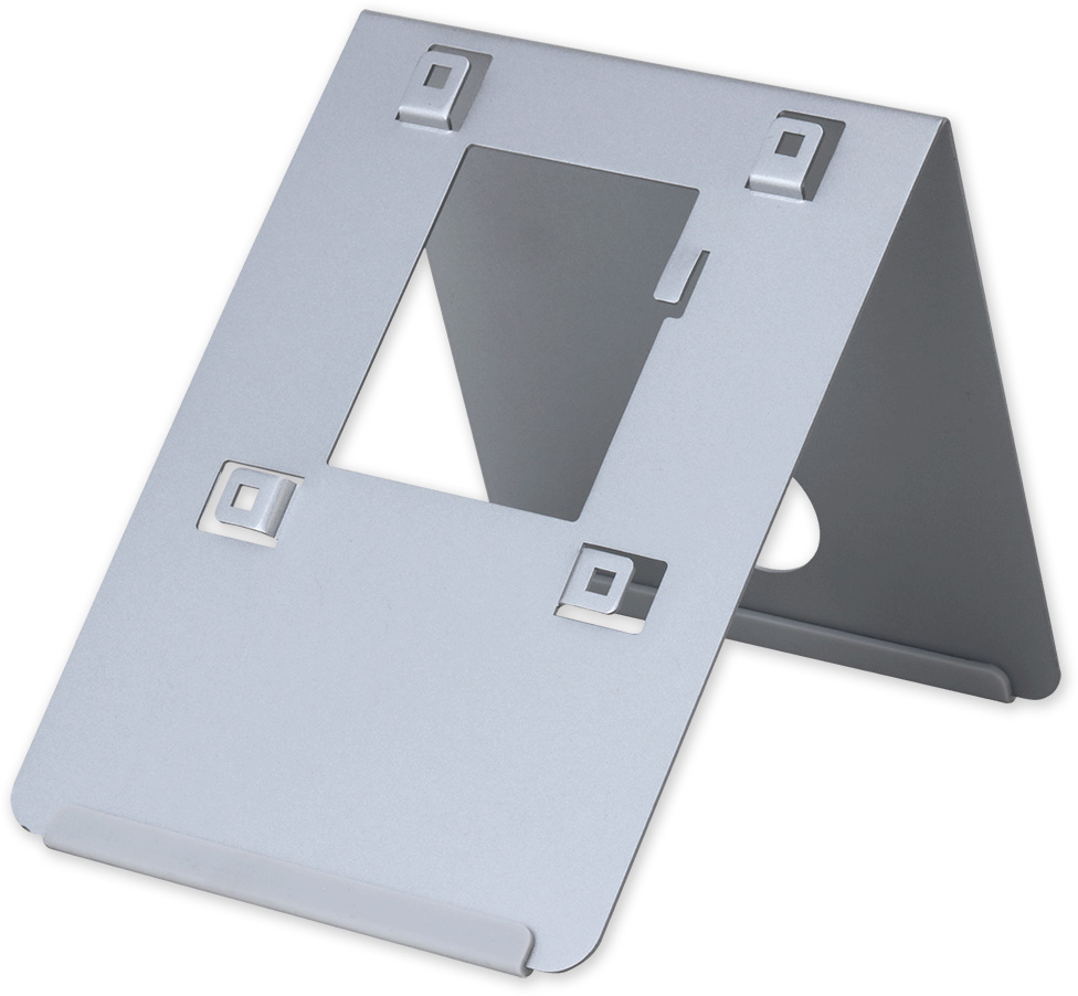 Stojan pro 7" videotelefony DAHUA. Stojan VTM59D je vyroben ze slitiny hliníku s povrchovou úpravou komaxitem (šedá). Nohy stojanu jsou opatřeny protiskluzovým pogumováním. Otvory v obou stěnách zajišťují snadný průchod přívodní kabeláže ke konektrorům monitoru. Monitory se ke stojanu přichycují snadno tak, že se prolisy v zadním krytu monitoru nasunou na fixační konzole stojanu VTM59D.