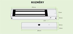 Elektrický přídržný magnet s přídržnou silou 500 kg. Pro uzamčení dveří musí být trvale připojeno napájecí napětí. Obsahuje spínací elektroniku s LED indikací napájecího napětí. Dodává se s ocelovým protikusem a montážním příslušenstvím.