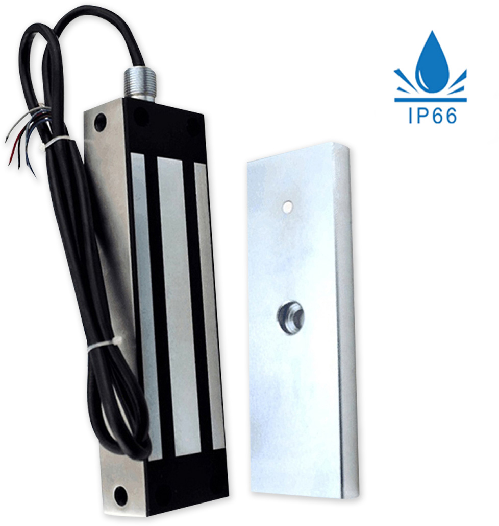 Elektrický přídržný magnet pro venkovní použití ( krytí IP66 )s přídržnou silou 500 kg. Pro uzamčení dveří musí být trvale připojeno napájecí napětí. Obsahuje vodotěsně zapouzdřenou spínací elektroniku. Dodává se s ocelovým protikusem.