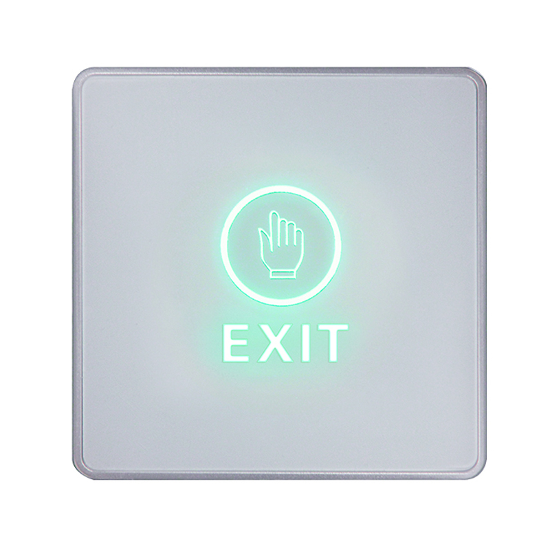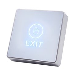 Odchodové tlačítko s podsvícením EB02-W tvoří plastové tělo čtvercového tvaru bílé barvy, elegantně doplněné stříbrným lemem. Čelním krytem z čirého polykarbonátu, na němž je znázorněn symbol otevření dveří a nápis EXIT, snadno prochází světlo, které pomáhá orientaci o poloze tlačítka i ve tmě.