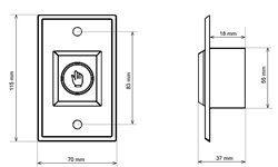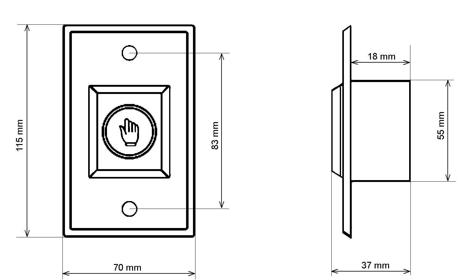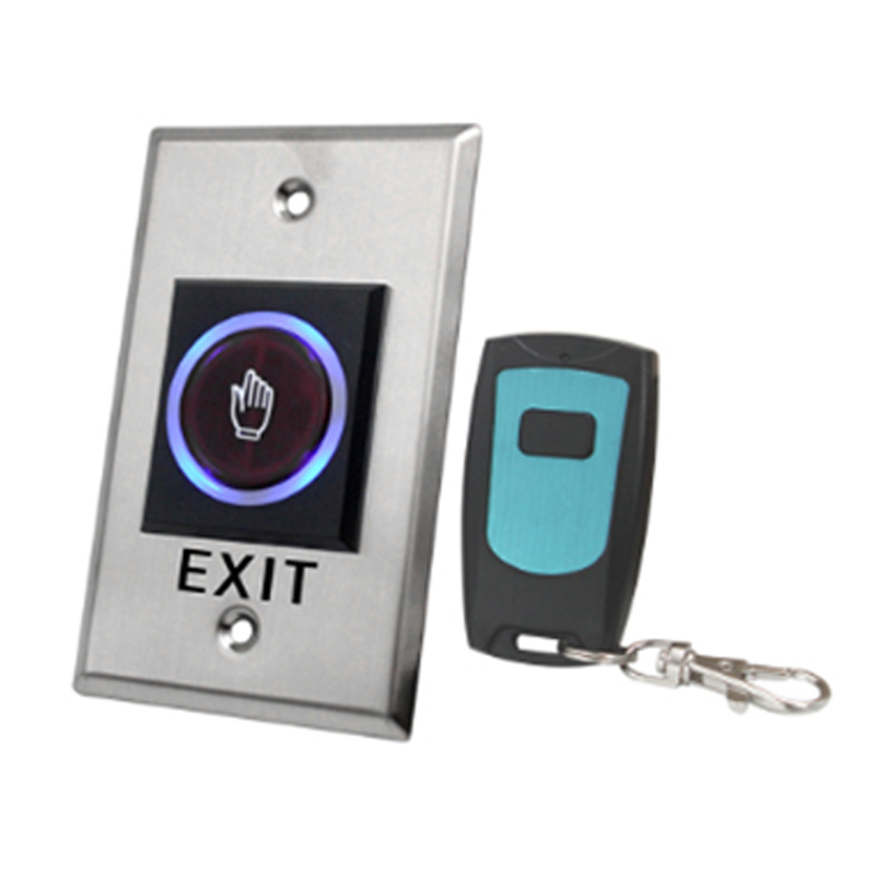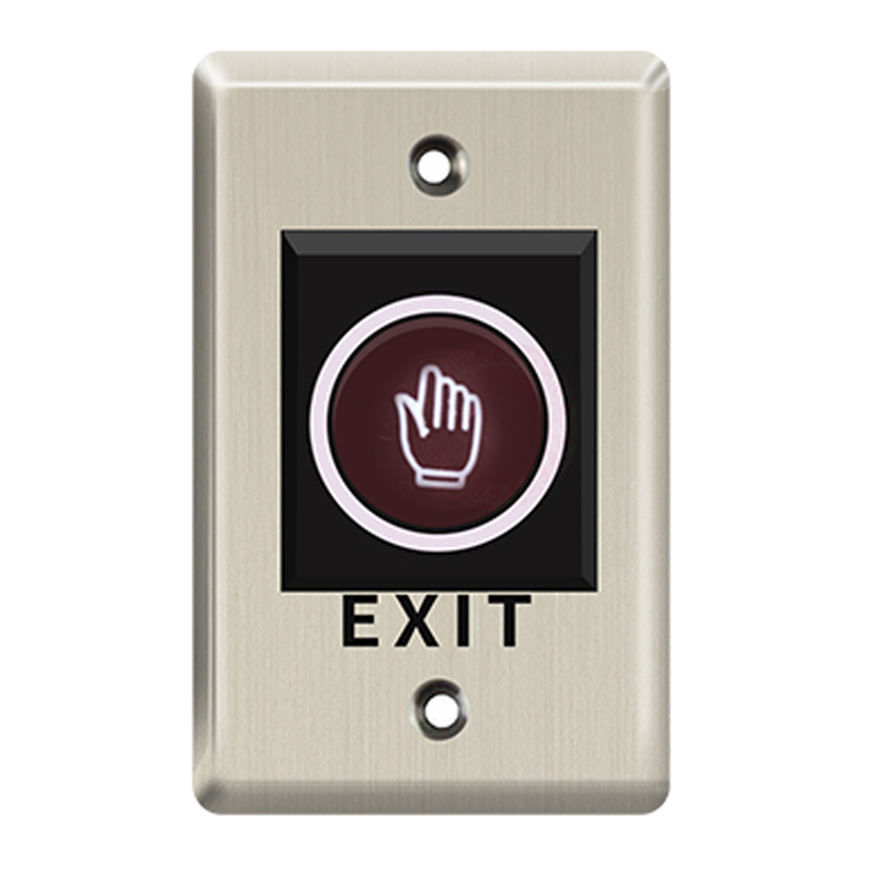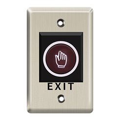 Bezdotykové tlačítko s podsvícením "EB03 + ovladač" tvoří obdélníkový čelní panel z nerezového plechu s vygravírovaným nápisem EXIT, ve středu osazený infračerveným indukčním snímačem s průsvitným okružím optické signalizace stavu tlačítka a symbolem k otevření dveří. K aktivaci dojde přiblížením objektu k čelu tlačítka na méně než 20 centimetrů.