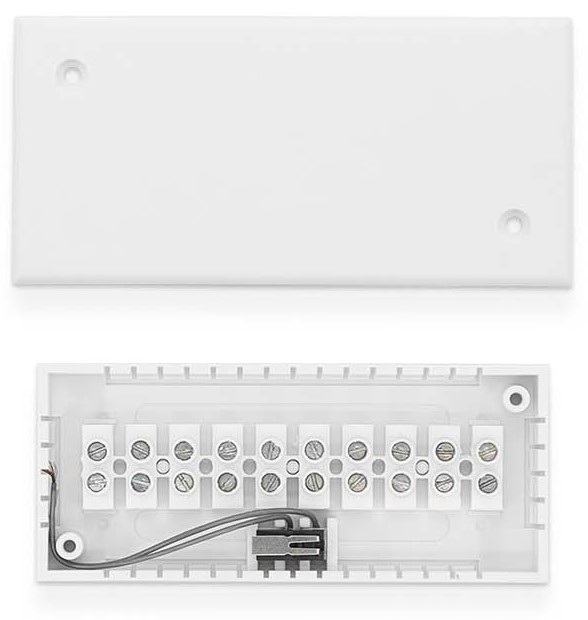 Rozvodná krabice RKZ 123 s 10 šroubovacími svorkami a mechanickým NC kontaktem, tamper.