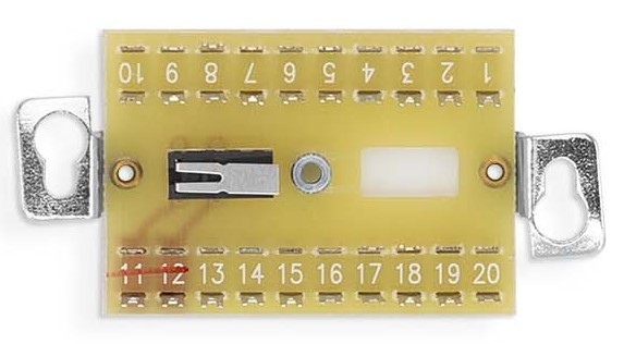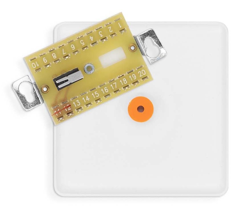 Rozvodná svorkovnice/tištěný spoj + kovový kryt s 20-ti letovacími svorkami a mechanickým NC kontaktem, tamper - 2 pájecí očka. Montáž je určena do instalační krabice typu KO-68 pod omítku, případně do sádrokartonu.