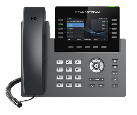 GRP2615 je IP telefon s 10 linkovými tlačítky z adaptabilní řady telefonů Grandstream, je navržený pro jednoduché hromadné nasazení a snadnou správu pomocí provisioningu. GRP2615 je vyroben pro potřeby zaneprázdněných desktopových pracovníků a pro snadné nasazení v podnicích, u poskytovatelů služeb a na dalších velkoobjemových trzích. GRP2615 je prvotřídní IP telefon s elegantním designem a sadou funkcí nové generace, včetně integrované Wi-Fi a Bluetooth, 40 víceúčelovými tlačítky (MPK), dvěma gigabitovými porty a dalšími. Toto zařízení je vybaveno velkým 4,3 palcovým barevným LCD displejem s vyměnitelnou čelní deskou, což umožňuje snadné přizpůsobení loga. GRP2615 lze nakonfigurovat pomocí systémem správy zařízení Grandstream (GDMS), který poskytuje centralizované rozhraní pro konfiguraci, provisioning, správu a sledování koncových bodů Grandstream.