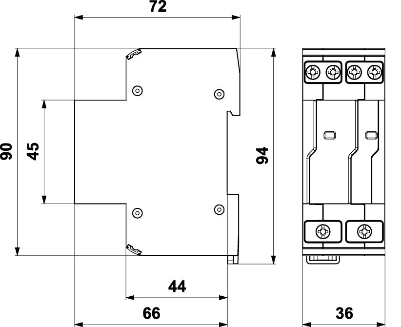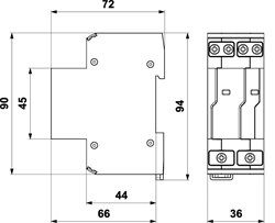 Rozměry: š 36 x v 90 x h 72 mm
