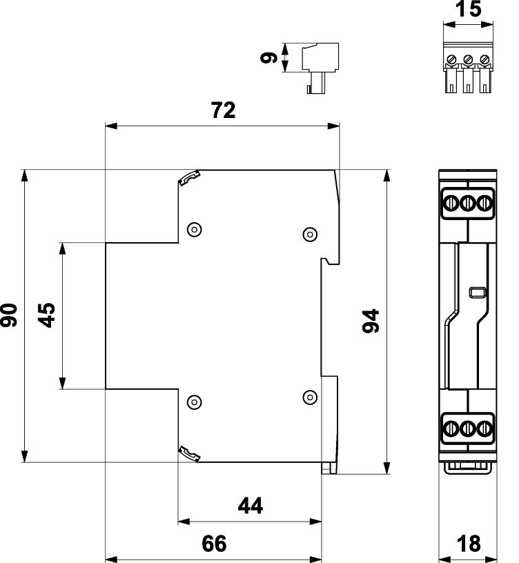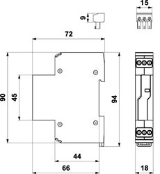 Rozměry: š 18 x v 90 x h 72 mm