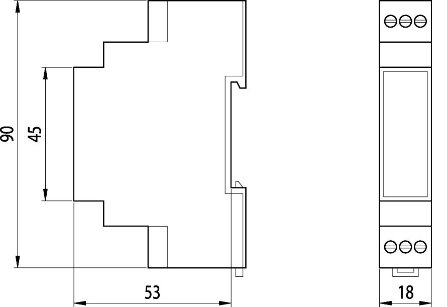 Rozměry: š 18 x v 90 x h 53 mm