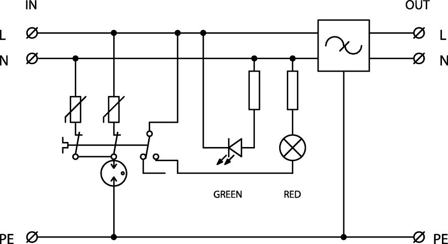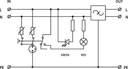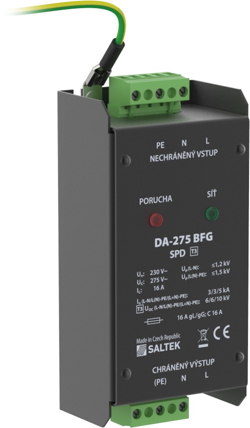 Přepěťová ochrana s vf filtrem, instalace do rozvodů NN těsně před chráněné zařízení, 230 V/16 A, optická signalizace poruchy, uzemňovací svorka, zařízení třídy ochrany I, k ochraně napájení řídicích systémů MaR, EZS, EPS apod. proti pulsnímu přepětí a vf rušení.