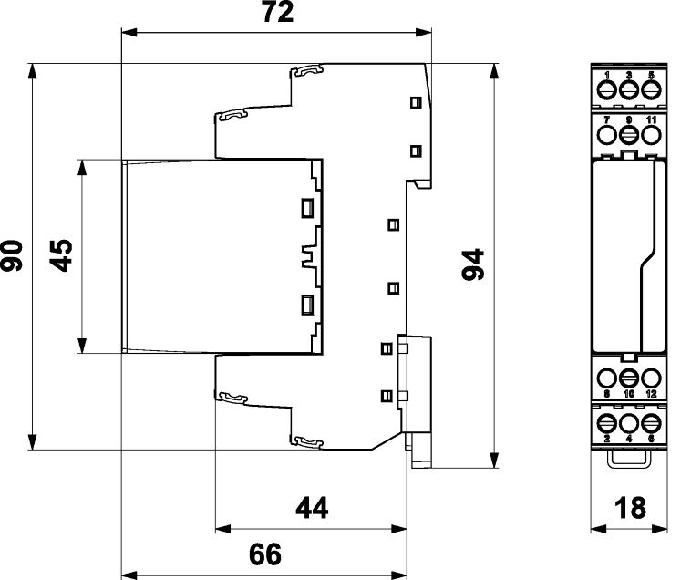Rozměry: š 18 x v 90 x h 72 mm