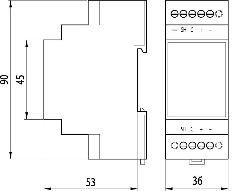 Rozměry: š 36 x v 90 x h 53 mm
