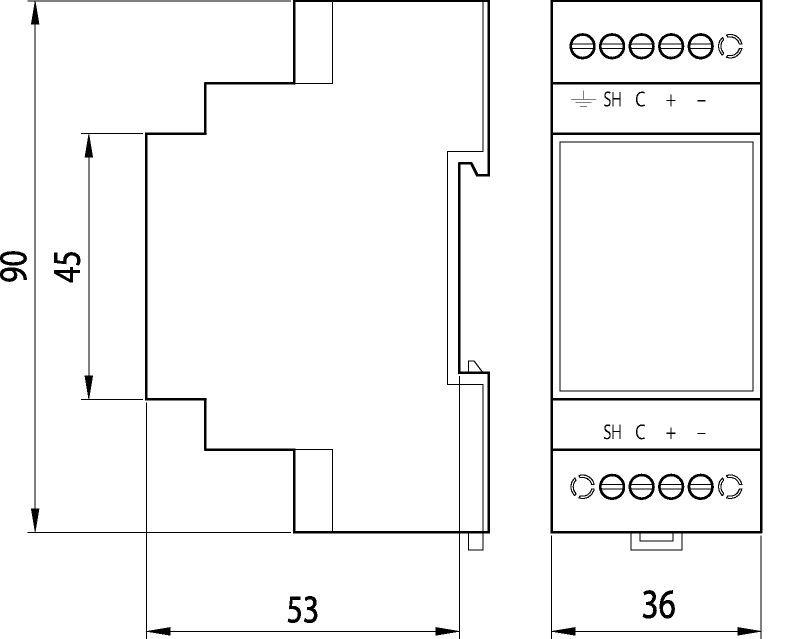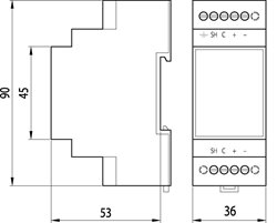 Rozměry: š 36 x v 90 x h 53 mm