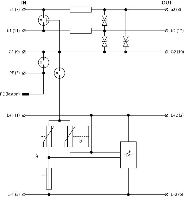 Kombinace dvoustupňové přepěťové ochrany dvoužilových signálových linek v datové části a přepěťové ochrany pro malé napětí v části napájení, instalace těsně před chráněné zařízení, signálová zem oddělena od ochranné země, 24 V DC, vyjímatelný modul, vazební impedance (R – odpor) v datové části, linka od ochranné země oddělena pomocí bleskojistky, k ochraně před pulsním přepětím pro rozhraní řídicích systémů MaR, EZS, EPS apod., zejména měřicích obvodů a čidel, kde jsou jedním kabelem přenášeny jak signály, tak napájení před pulsním přepětím.