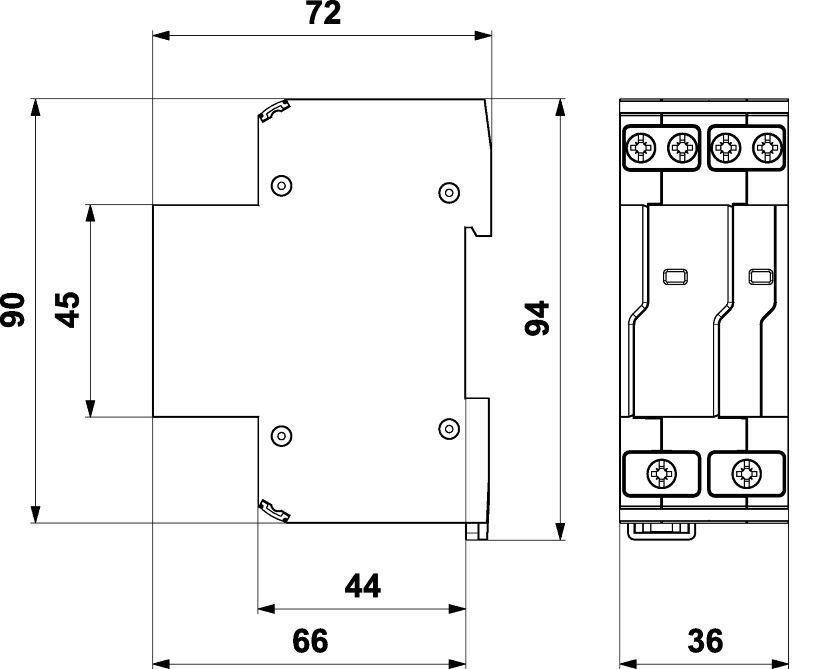Rozměry: š 36 x v 90 x h 72 mm