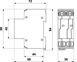 Rozměry: š 36 x v 90 x h 72 mm