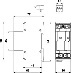 Rozměry: š 36 x v 90 x h 72 mm