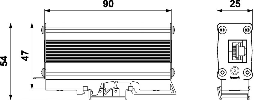 Rozměry: š 25 x v 90 x h 54 mm