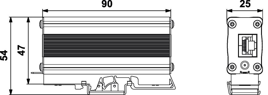 Rozměry: š 25 x v 90 x h 54 mm