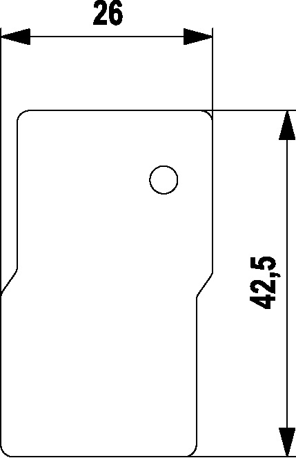 Rozměry: š 26 x v 42,5 x h 2 mm