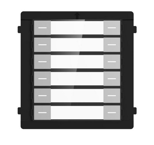 Modul s dvanácti zvonkovými tlačítky a prostornými jmenovkami; v nočním režimu jsou jmenovky podsvětleny; nevyužité tlačítko je možné zaslepit (balení obsahuje 4 záslepky) ; Určeno pro IP systém i 2-vodičový systém(kompatibilita s DS-KD8003-IME1(B), DS-KD8003Y-IME2 a DS-KD-7003EY-IME2), POZOR - není kompatibilní s DS-KD8003-IME1 a DS-KD8003-IME2