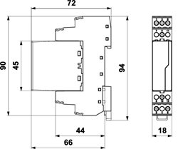 Rozměry: š 18 x v 90 x h 72 mm
