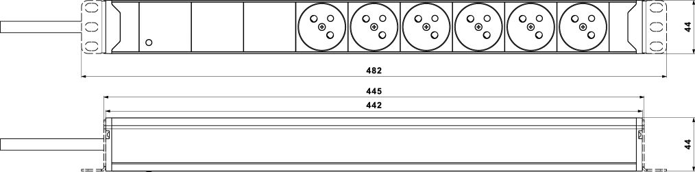 19" napájecí panel, 1U, 6x 230 V, přepěťová ochrana