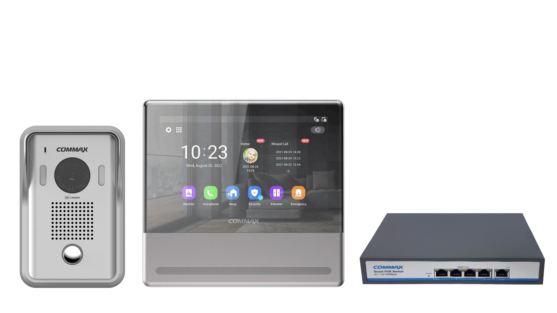 IP sada dveřní stanice CIP-D20YS, 7" videotelefonu CIP-70QPT a 4+1 PoE switche CIOT-H4L2