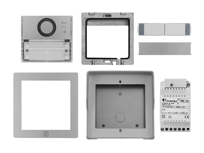 Sada MyCom 4G/GSM komunikátoru určená pro povrchovou montáž. Sada obsahuje modul 4G/GSM komunikátoru AB4G, povrchovou montážní krabičku AB91, napájecí zdroj PRS210, instalační rámečky AB61 a AB71, 1ks záslepky AB20 a krytky tlačítka AB21.