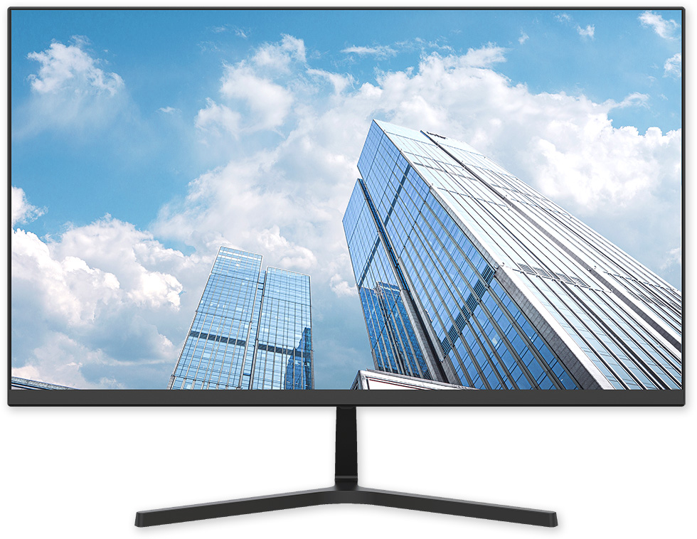 Barevný širokoúhlý LCD monitor 27", Full HD rozlišení, HDMI a VGA vstup, reproduktory, možnost VESA uchycení na zeď, vhodný pro kamerové systémy.