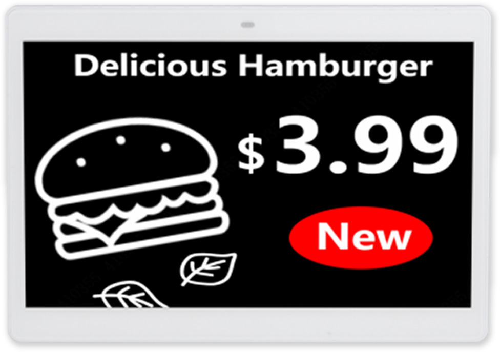 Elektronický digitální papír ESL velikost 4.2" pro maloobchodní regálové štítky, kombinace barev černá, bílá, červená, NFC. Komunikace s obslužným AP pomocí správy na Cloud účtu a SW třetích stran přes API rozhraní. Napájení 4x baterií CR2450 3V, 600 mAh, životnost 5 let při přepisu 4x denně, rozměr 176.8 mm × 124.3 mm × 13 mm