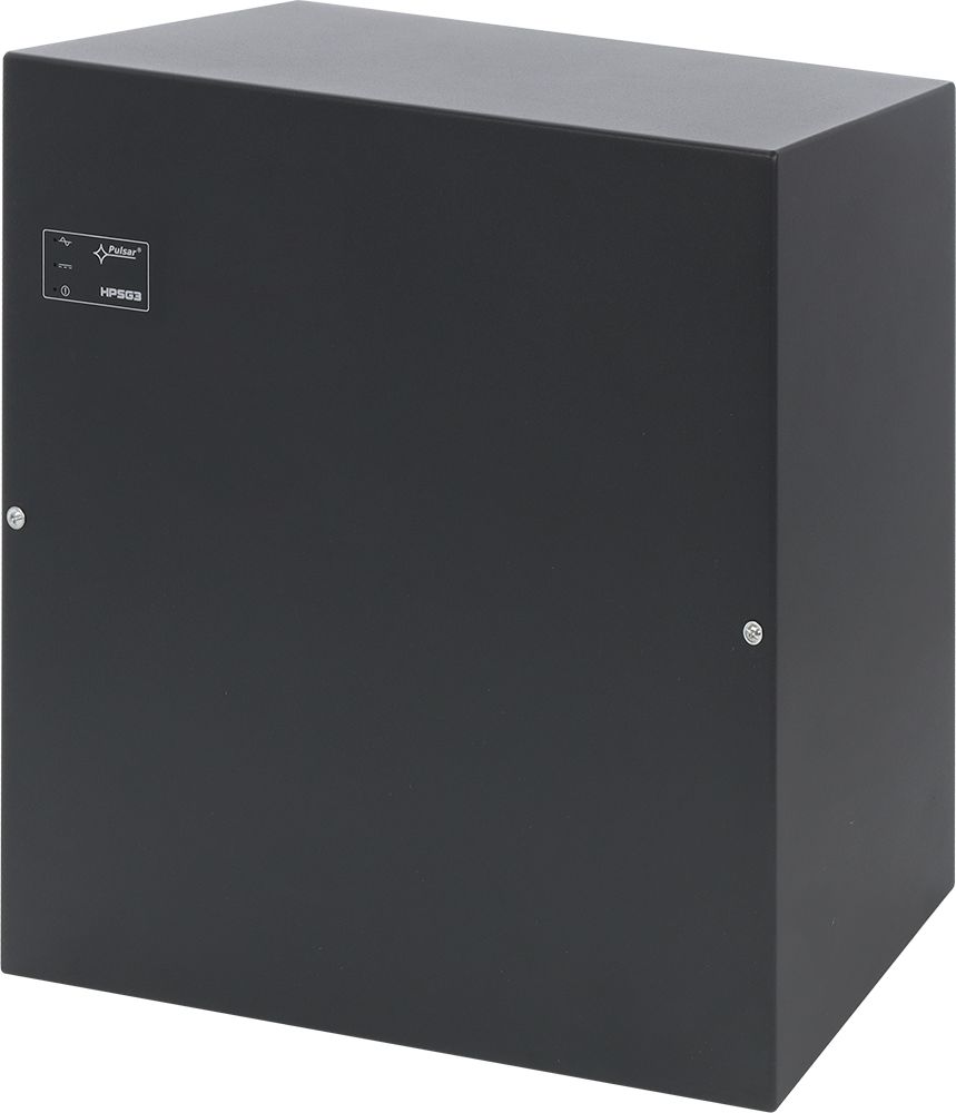 Pomocný spínaný zdroj v plechovém boxu s LED signalizací, určený pro instalace do poplachových systémů se stupněm zabezpečení 2 a 3. LED zobrazují aktuální stav pomocného zdroje. Zdroj je v provedení AC/DC měniče, který se vyznačuje vysokou provozní odolností, vysokou účinností a minimálním ohřevem. Modul vyhodnocuje poruchu AC, AUX a akumulátoru a tyto stavy jsou signalizovány pomocí výstupních relé. Pro splnění bezpečnostní kategorie je potřeba vznik poruchy přenášet do systému. Výstupní proud AUX a dobíjecí proud akumulátoru je potřeba volit tak, aby byla splněna příslušná bezpečnostní norma z hlediska doby zálohování a doby dobíjení akumulátoru.